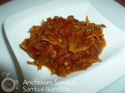 Anchovies Sambal /Dried Whitebait or Sambal Ikan Bilis which goes very well with Nasi Lemak.There are many ways of doing this sambal, you can add garlic or ginger or both together, you can also do this sambal with dried chillies or chilli paste that you purchase from the wet market. Do not use chilli powder because the taste would differ.This sambal dish does not only goes well with nasi lemak ,being an indian , I have it as a spicy side dish for sothi,sambar and any type of dhall curries.Its finger licking good !!