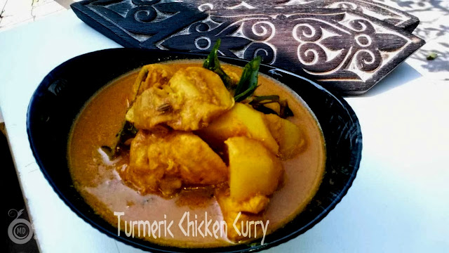 In this turmeric chicken curry I have used fresh turmeric.You can smell the strong aroma of turmeric in this curry .It goes very well with rice.
