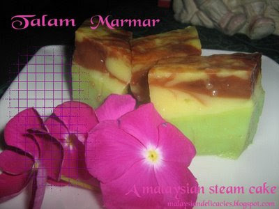 Kuih talam(steamed cakes), in Malay are more often steamed than baked, and thus very different in texture, flavour and appearance from Western cakes or puff pastries.