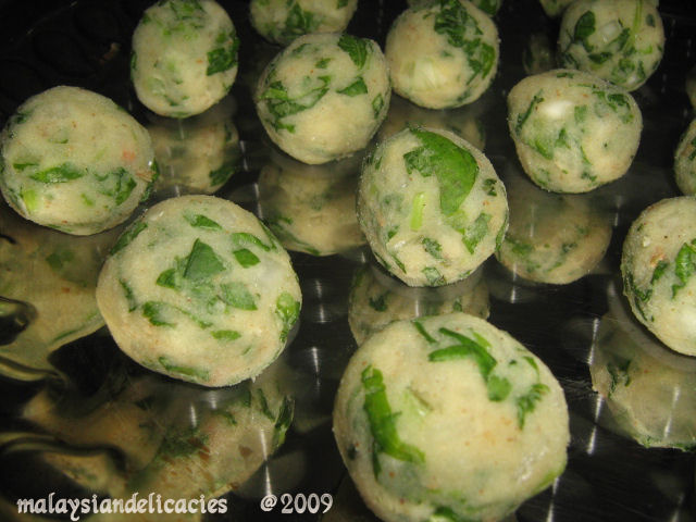 Shape them into round balls.If dough sticky you can add more chana flour.