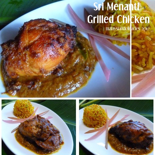 Remove Chicken from gravy and grill (broil) over hot charcoal for 10 minutes. Basting with gravy, chicken would be turned from time to time. Alternatively, use oven-grill for similar effect.(I used the microwave grill,produced a beautiful grilled chicken)