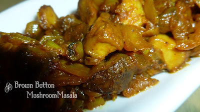 Once the oil has separated from the masala,stir in the mushrooms ,cover and cook.Stir occasionally .Cook until the mushroom have soften.You can taste a small piece to ensure that the mushroom had reached the desired texture.Serve as a side dish.