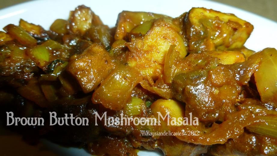 Heat oil,sauté fennel,cardamom pods,bay leaf until aromatic.Add the onions and sauté until fragrant.Add in all the rest of the ingredients except mushroom.Cook in low fire until oil separates.Meanwhile cut the mushrooms into 6 parts.