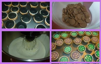 Place small paper cups into small cups This will ensure a nicely shaped apams. Place a tsp of batter into a paper cup.Place a button in the center and top up with more batter.Do until you have used up all the paper cups. Make sure you beat each time before pouring the batter into the paper cups. The kuih will rise up,so do not pour the batter full.