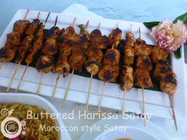 The second recipe is Buttered Harissa Satay.Harissa is a hot chili paste that is commonly found in North African cooking, mainly Moroccan, Algerian, and Tunisian cuisine. It is added to couscous, soups, pastas and other recipes. It can also be purchased in Middle Eastern stores in a can.