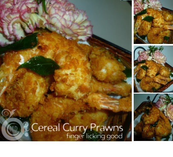 Sometimes when I am in a rush, this cereal curry prawns would be a dish that I prepare as a side dish. It goes well as an accompaniment with rice ,with me anytime ! Easy to prepare and served immediately with some chilli sauce,its finger licking good!!There are so many variations that one can prepare when prawns are dipped in batter. You can add spices or herbs to suit your taste bud .Sharing one simple version with all of you . Maybe you can try it out for the coming Chinese New Year or holiday .