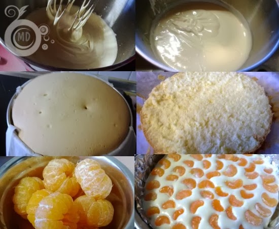 The Spring Festival was the product of an agrarian society. The people who were farmers would plant in spring, harvest in autumn, relax a little in summer and rest in winter. The seasons thus became a living cycle and the harvests were dependant on nature. MD would like to wish all friends and bloggers a very Happy Chinese New Year 2014 .On this festive occasion , MD would like to share a Sweet Tangerine Mousse Cake .The cake goes through three stages of preparation , first the sponge cake , then the mousse and finally the gelatine topping .
