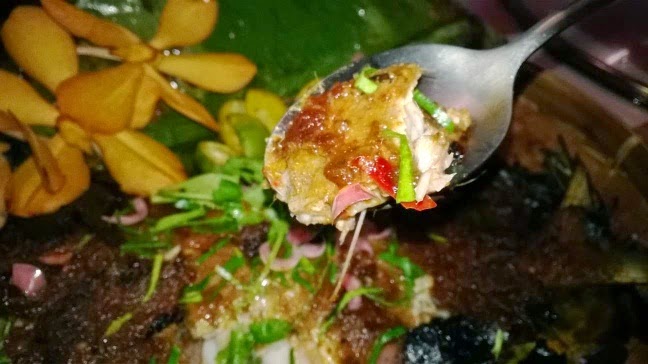 over fish and wrap in a piece of banana leaf. Grill over glowing charcoal or