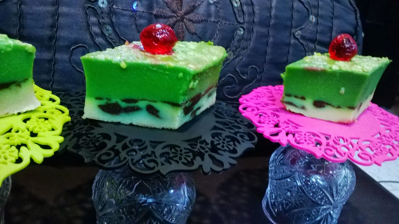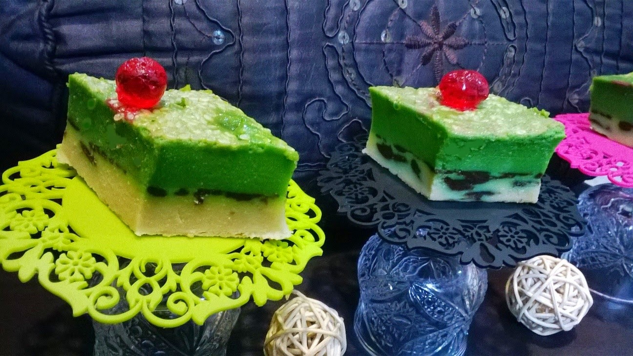 Sieve into a bowl. Separate the batter into 2 parts . The first part, mix in pandan emulco and green colouring .