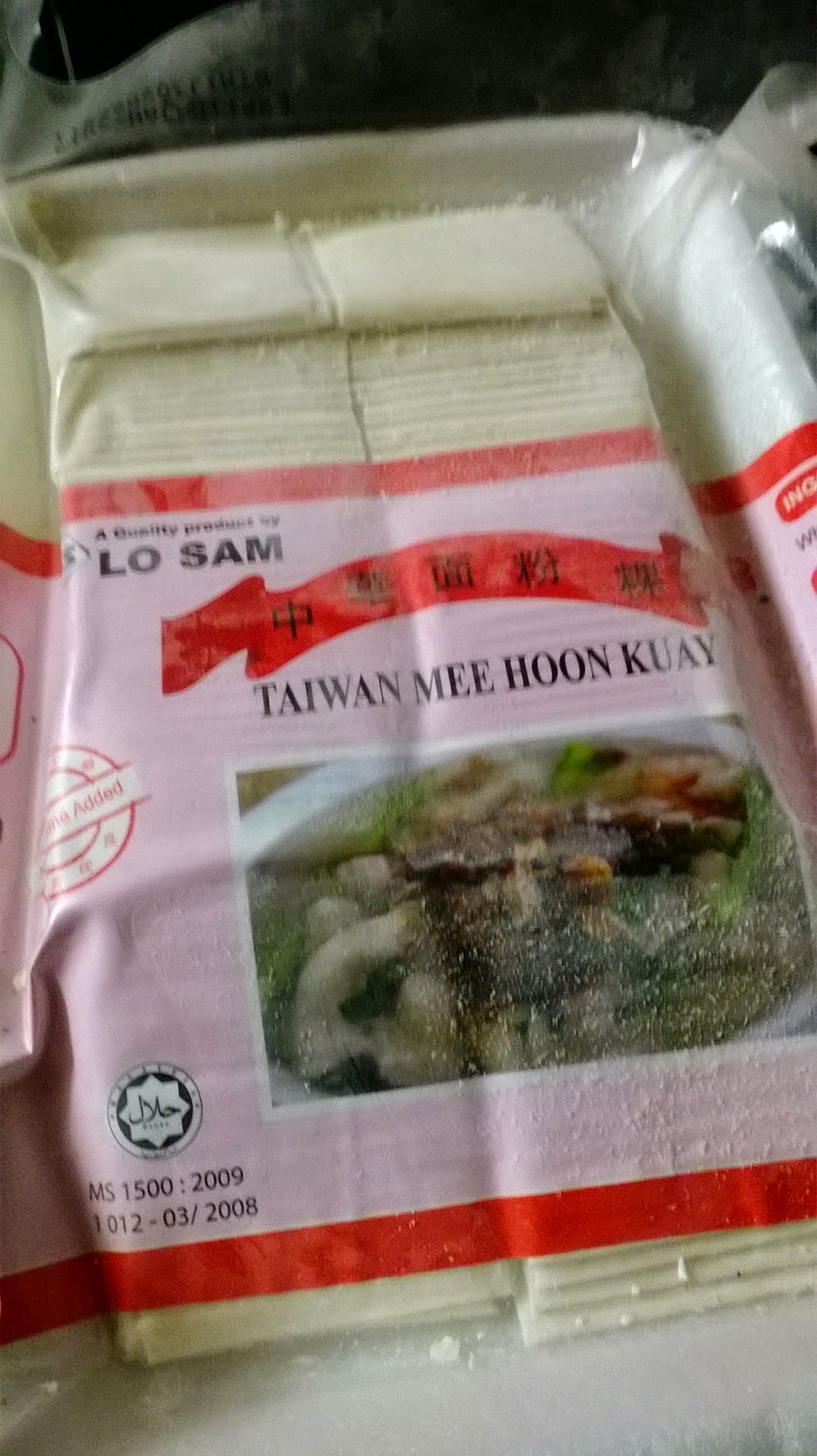 Mee hoon kueh or hand pulled noodles , is a hokkien dish but not a famous one among non Chinese. A flour dough is prepared and then it is pulled with hand and thrown into hot boiling water. . Usually a bowl of the noodles is made and served with a broth made from anchovies, or ikan bilis. These noodles are said to have originated from the pinched variety or mee hoon kueh, whereby the dough is pulled and torn and cooked in boiling water. This manual pulling of the dough gives the kueh a distinct frilly edge. Once it is cooked, the kuehs are silky smooth with a slight al dente bite. However, one need not go into all these process as it is easily available in the cold section in supermarkets.There is the 'Taiwan mee hoon kuay' (image at the bottom of the page) that you can buy and use instead of making the noodle ! The broth gets a sweet taste, from a generous sprinkling of deep fried ikan bilis/anchovies and shallot crisps. It is usually topped with preserved vegetables or leafy greens and minced meat.