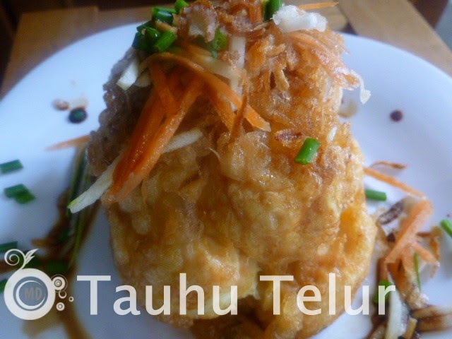Indonesian bean curd omelet served with a spicy sweet soy sauce