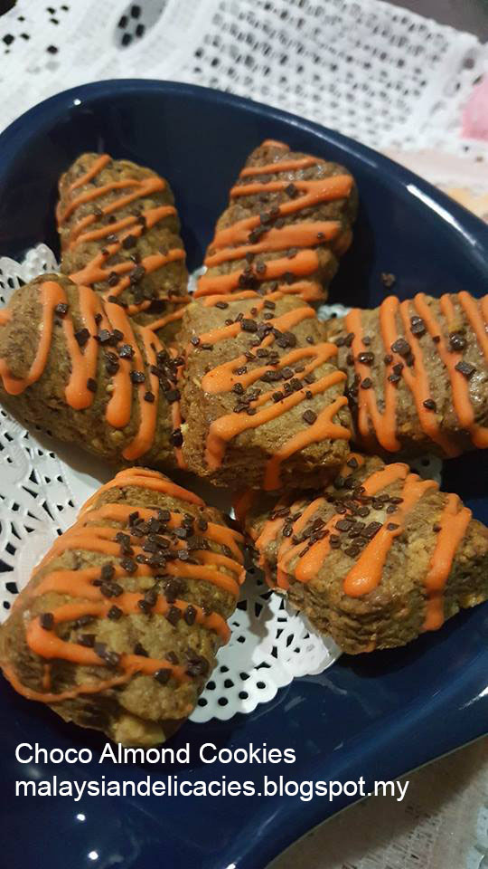 Bake in preheated oven 180C for 15mins , depending on the thickness of your cookies. Decorate with melted chocolate and sprinklers.
