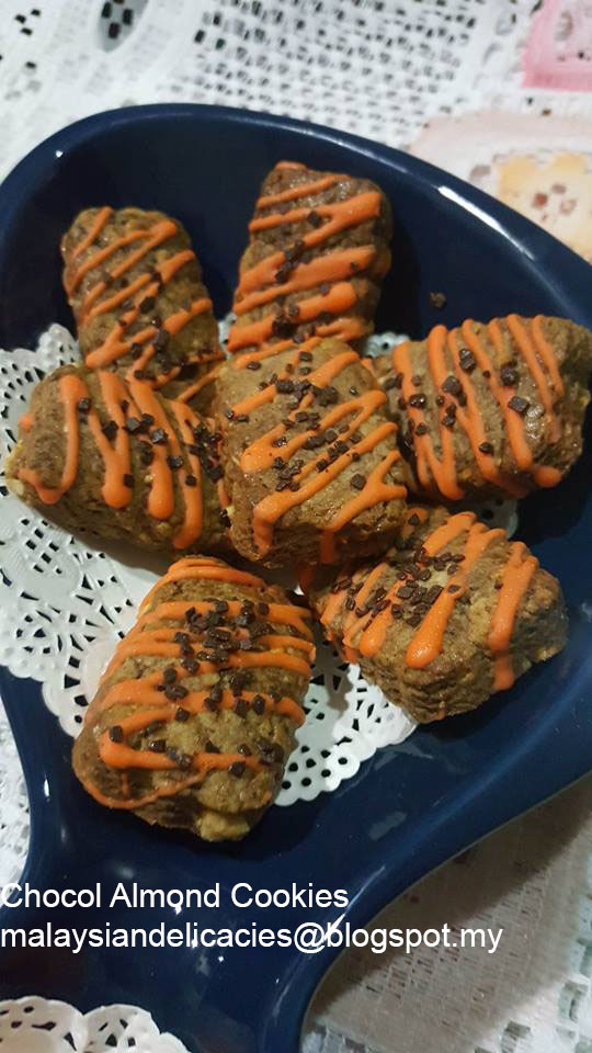 Bake in preheated oven 180C for 15mins , depending on the thickness of your cookies. Decorate with melted chocolate and sprinklers.