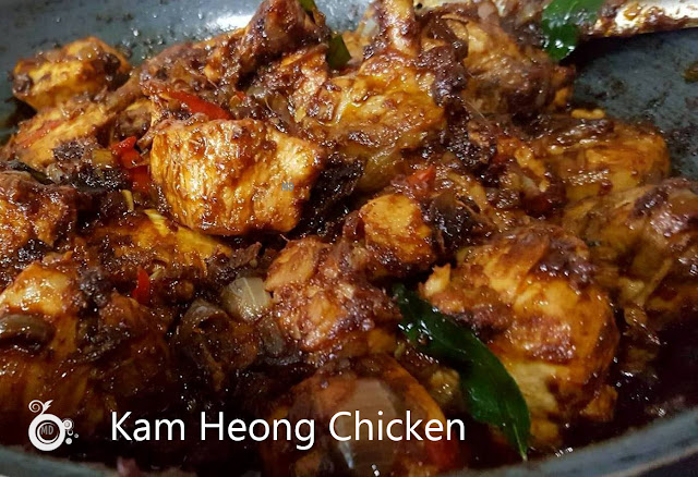 In a wok, heat up 3 tbsp oil, throw in curry leaves, then shallots and garlic. Saute until aromatic ,add in dried prawns and saute further. Then add in curry powder, and the sauces. Stir until well combined. Stir until spices are aromatic. Then mix in chicken , sugar and mix well with the sauce. Leave to cook for about 5 mins. Dish out and serve with rice.