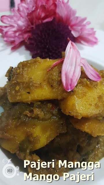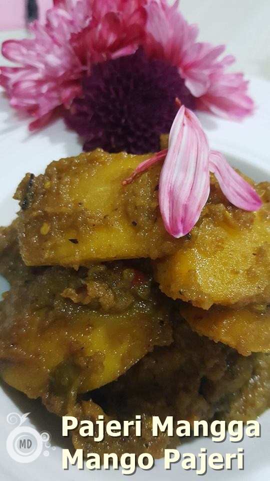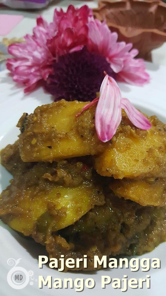 Heat abt 5 tbsp oil, throw in cinnamon stick,star anise,cloves, and cardamom. Once its starts spluttering, add in the grind ingredients and saute until aromatic. Add in tamarind juice, nutmeg powder, mangoes, turmeric powder and stir well. Add a bit of water about 1/4 cup and leave to simmer. Once thicken, add in kerisik and coconut milk. Leave to thicken , add sugar and salt to taste. Dish out and serve as a side dish.
