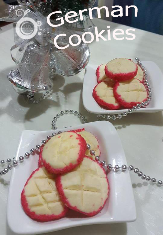 Then using a spatula, mix in sieved dry ingredients. If the dough is soft to handle, refrigerate it for an a few hours or overnight for easy handling. Take bigger than a marble size, roll and flatten it slightly (it will spread a bit once baked). Roll the edges of the dough with coloured sugar. Use a fork and make diamond shape on top. Bake for 15 to 20mins, depending on the size and thickness. The cookie is a melting in the mouth , great with a cuppa of tea or coffee. A thumbs up for a festive cookie or one can bake for kids anytime.