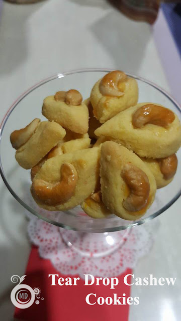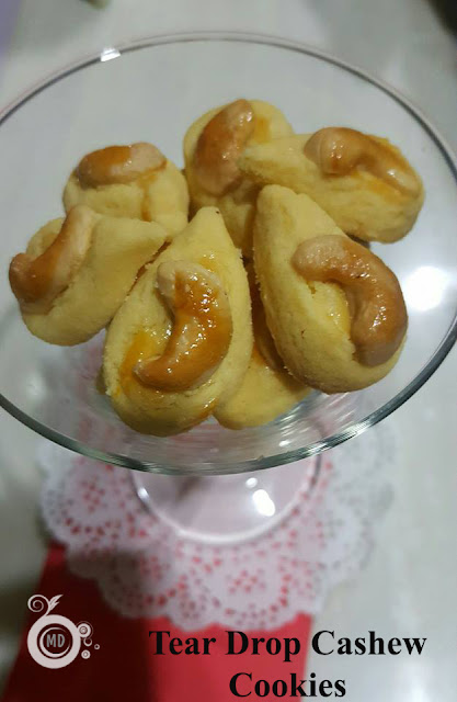 Cream butter,sugar ,egg yolk and vanilla essence until creamy. Add in dry ingredients and grounded cashewnuts. Mix well into a soft fir dough. Add more flour if needed.