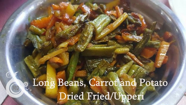 Cut potato,carrot, and long beans all in1/2 in length. Keep aside.