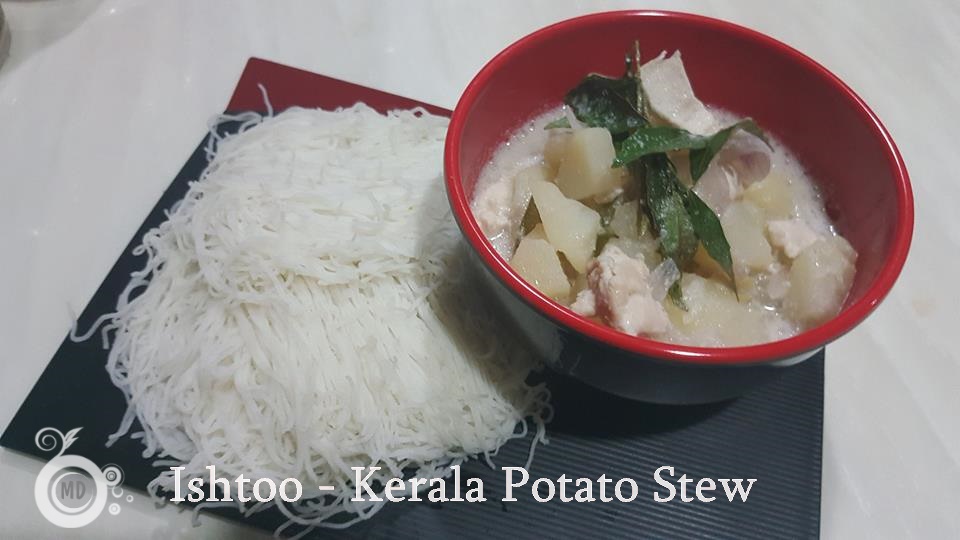 This is a simple Kerala stew, which is my favorite. It's actually a vegetarian stew, but at times my mom throws in some thinly sliced chicken meat. It tastes great. LOL. This stew is served with string hopper, dosa or idli. Sometimes I eat it with white bread.