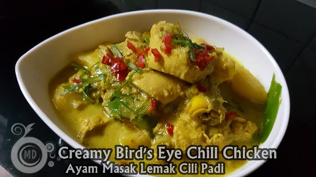 The dish is yummy, spicy and rich with coconut milk.Ayam means chicken, masak means cook, lemak stands for creamy and cili padi is bird's eye chilies!!So let's check out the recipe!