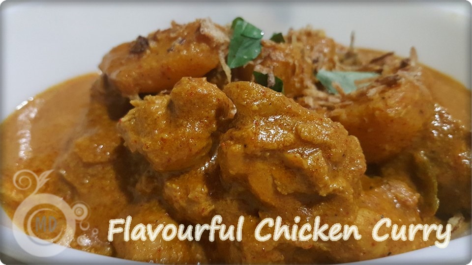 In a wok/pan, heat 4 to 5 tbsp oil. Add in spices (Ingredients D), then add in the marinated chicken. Stir to combine the ingredients, add in potatoes.Close the lid and leave to cook gently.After about 5 mins, start adding the dry powders one by one (Ingredients B). Give a good stir to combine all the ingredients. Then add in shallot crisp powder, almond paste and tomato sauce. Stir again to combine the ingredients. Leave to gently cook, check to see if potatoes are soft. Then slowly mix in coconut milk and stir. Check if salt is enough, if not add more. Leave to simmer for about 3 to 4 minutes or gravy becomes a bit thick or reach the desired consistency. Stir in curry leaves and close fire.