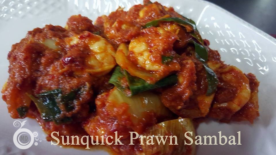 Heat 1/4 cup oil, saute the grounded ingredients until oil floats on top, add in tomato puri and sunquick. Mix in salt and also sugar to taste. I added more sugar as when it caramelize, you will get a rich red colour for your dish. a few minutes before closing fire, mix in quartered onion and shredded turmeric leaf. Serve with rice.