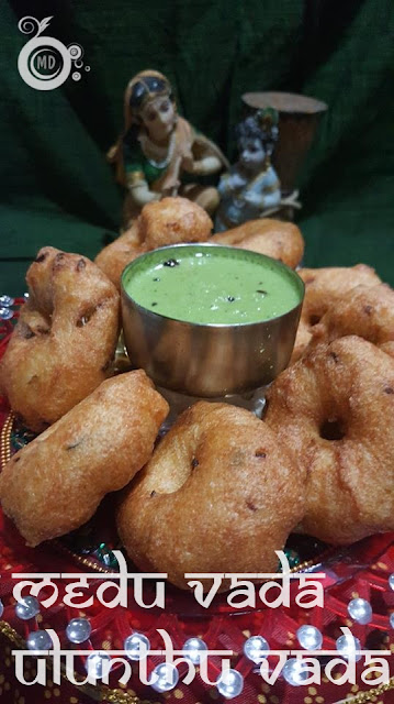 The vadas are usually served for tea time,breakfast or after a hearty meal as a light snack. I love to dip the vadas in mint or coriander chutney as it tastes so refreshing when munching !!