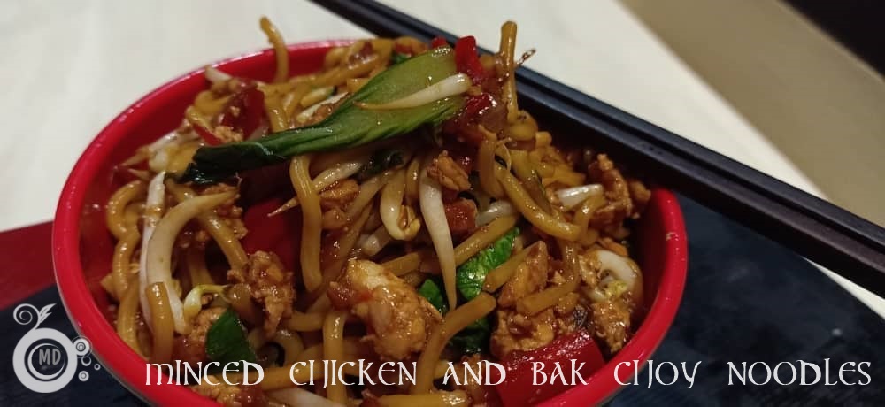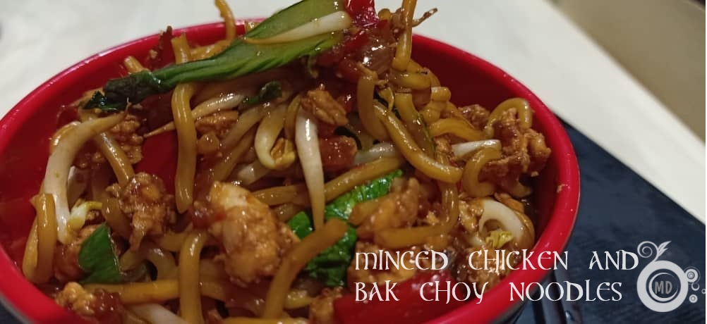 Heat wok and our in about 2 tbsp oil. Saute the pounded ingredient until aromatic. Throw in minced chicken and stir fry until chicken is cooked. Next, mix in the ramen noodles, followed by all the sauce with sugar. Stir for a minute, then throw in the bak choy, beansprouts and spring onions. Stir fry until bak choy has softened. Dish out and serve.