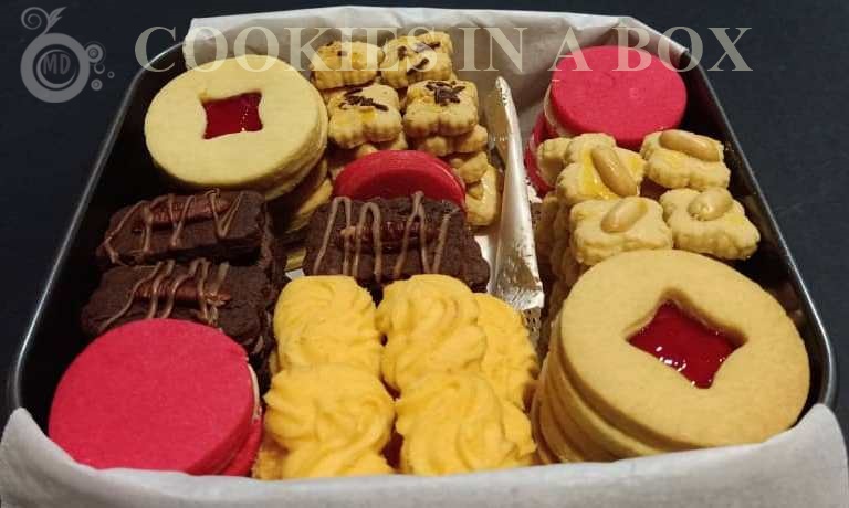 Cookies baked using one simple base dough and transform it into different cookie doughs to get five different varieties of cookies. Each cookie has different flavour and different design to suit any festivities.