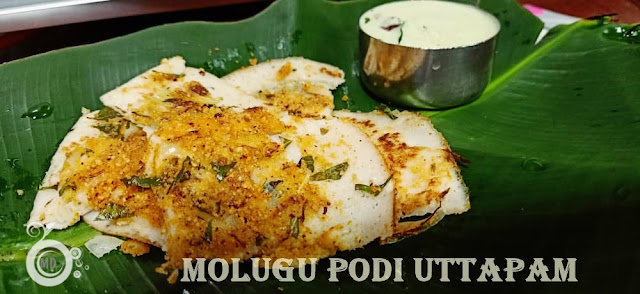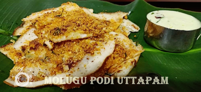 The powder can also be used to have a flavourful uttapam. Uttapam is done with dosa batter. Serve uttapam with some mint chutney! Yummy.