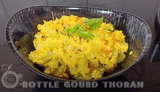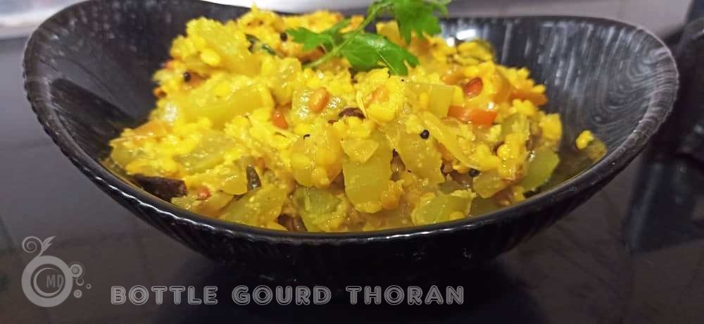 In a wok or skillet, heat 2 tbsp oil, to it add dried chillies, mustard seeds, cinnamon stick,1 curry leaf, cardamom, and cloves. Once the mustard seeds start spluttering, add in chopped garlic, onions and green chillies. Once aromatic, add in the diced bottle gourd and give a stir. Mix in the broken mung dal along with the soaked water. Add in turmeric powder, salt and 1/2 cup of water. Stir and leave to simmer gently until the vegetable is cooked and the water reduces. Then add in cumin seeds, curry leaves and grated coconut. Leave for a minute or two. Check if salt is enough. Add if necessary. Then close fire and serve as a side dish with rice.