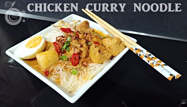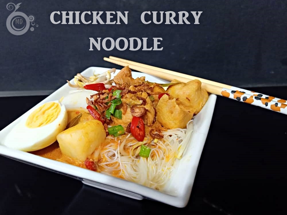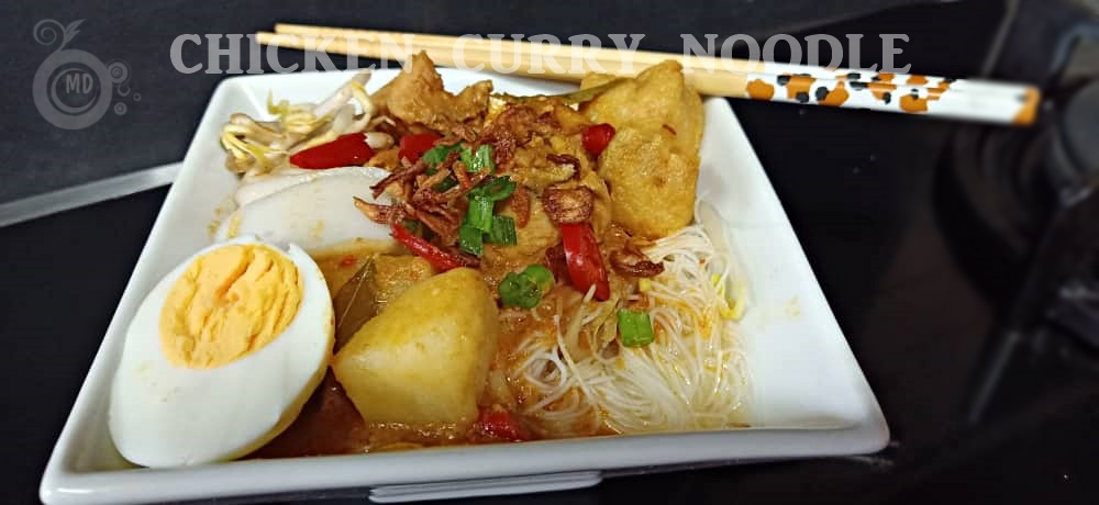 c) This is my version of curry noodle when using chicken. For seafood (prawns and cockles) the ingredients are slightly different. I will blog seafood curry noodle in the near future.