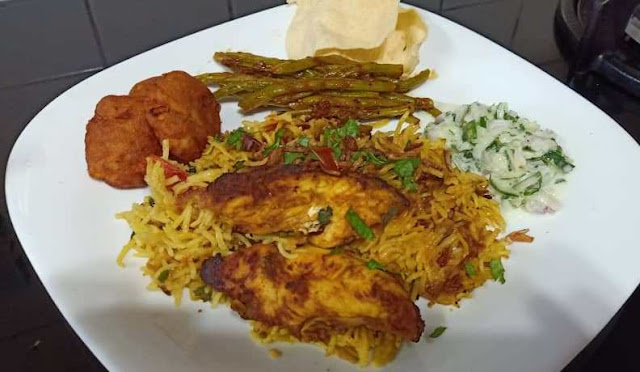 The dish goes well with cucumber raita, dalca or vegetable curry or with some onion sambal.