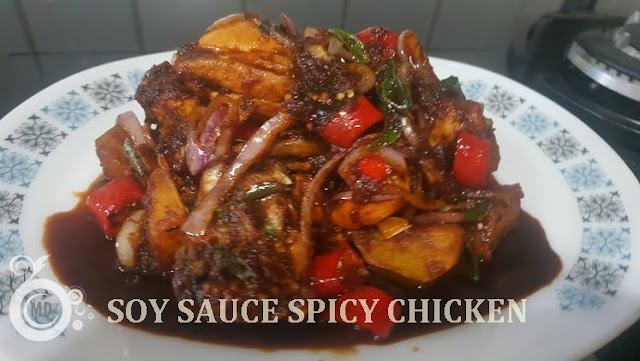 Heat some oil (can use the leftover oil from frying the chicken), add in a cinnamon stick, followed by pounded ingredients. saute until aromatic. Then add in the fried chicken and potatoes. Stir well to mix. Mix in chilli paste, dark soy sauce, tamarind water and stir well to incorporate all the ingredients. Leave for a few minutes then mix in the green and red chillies, onion rings, and stir well. You add some water if you want gravy. Finalised with adding curry leaves. Dish out and serve as a side dish with rice.