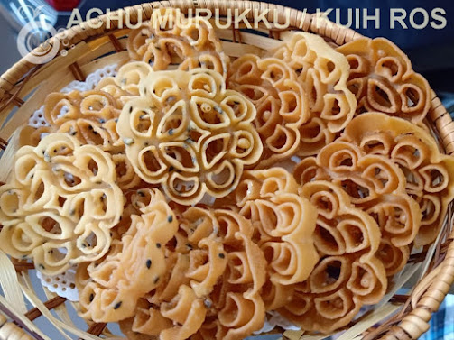 Rose murukku or Achu murukku is a crispy, popular and delicious flower-shaped murukku. The mould used to make Achu Murukku is made of thin metal sheet shaped like a flower. Lately, there are many types of design in the market. Buy any design that fancies you. It is a very easy recipe once you get a hang on it and a must for Deepavali in all homes. There are many variations in making this sweet snack. However, a compulsory flour used in this recipe is the rice flour. Some use cornflour instead of plain flour. You can use rose essence or cardamom powder for flavouring. In Malaysia. we usually use rose essence.